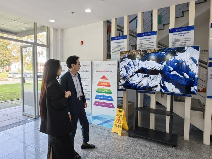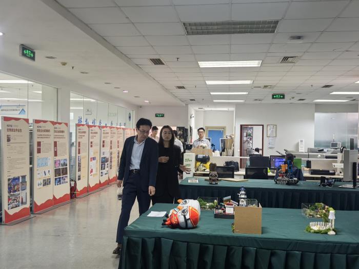 10月 13 日下午,东软集团商用事业部客人日本 Gynamics 株式会社古山浩之社长,在校办主任张劼引领下,来到创新创业学院(SOVO)参观。学院孵化活动办公室主任韩庆龙和向雪碧老师在门口热情迎接了远道而来的客人。