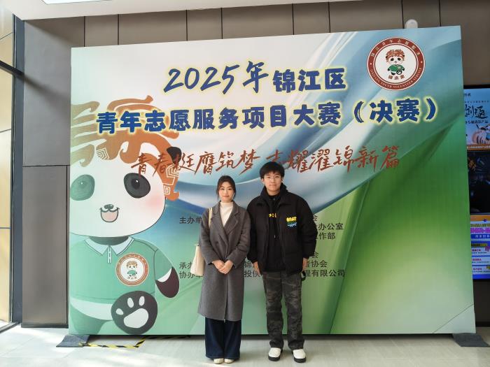 近日,2025年锦江区青年志愿服务项目大赛(决赛)在东湖岛数字传媒产业园落下帷幕,创新创业学院(SOVO)学生助理团队同学和创业校友共同完成的项目《以商助志守护青春记忆与传递温暖力量》获得常规赛银奖。