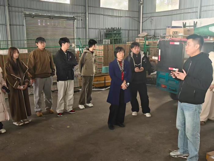 在吴崇敏学长的引领下,参访师生们首先参观了企业的猕猴桃生产包装车间,了解其核心产品的生产流程与品质控制。随后,大家走进物流中心,观摩了从分拣到配送的完整供应链条,其中无人驾驶快递车等智能化设备令参访师生印象深刻。吴崇敏学长特别提到,发往成都东软学院的快递正是经由该中心中转,体现了企业与母校之间的巧妙联系。
