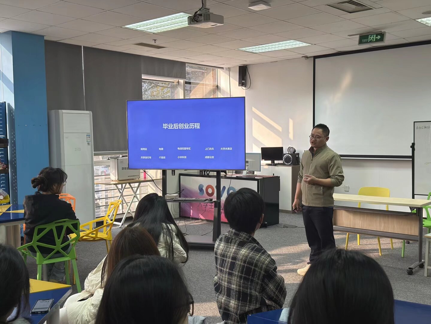 11月26日下午,一场以“大学生毕业规划与就业新武器AI”为主题的创业校友讲座在大学生创业中心(SOVO)成功举办。2009级软件工程专业校友、成都云创时光科技有限公司董事长高伟,携合作伙伴陈思梦总经理重返校园,为学弟学妹带来了一场兼具实战经验与前沿洞察的分享盛宴。