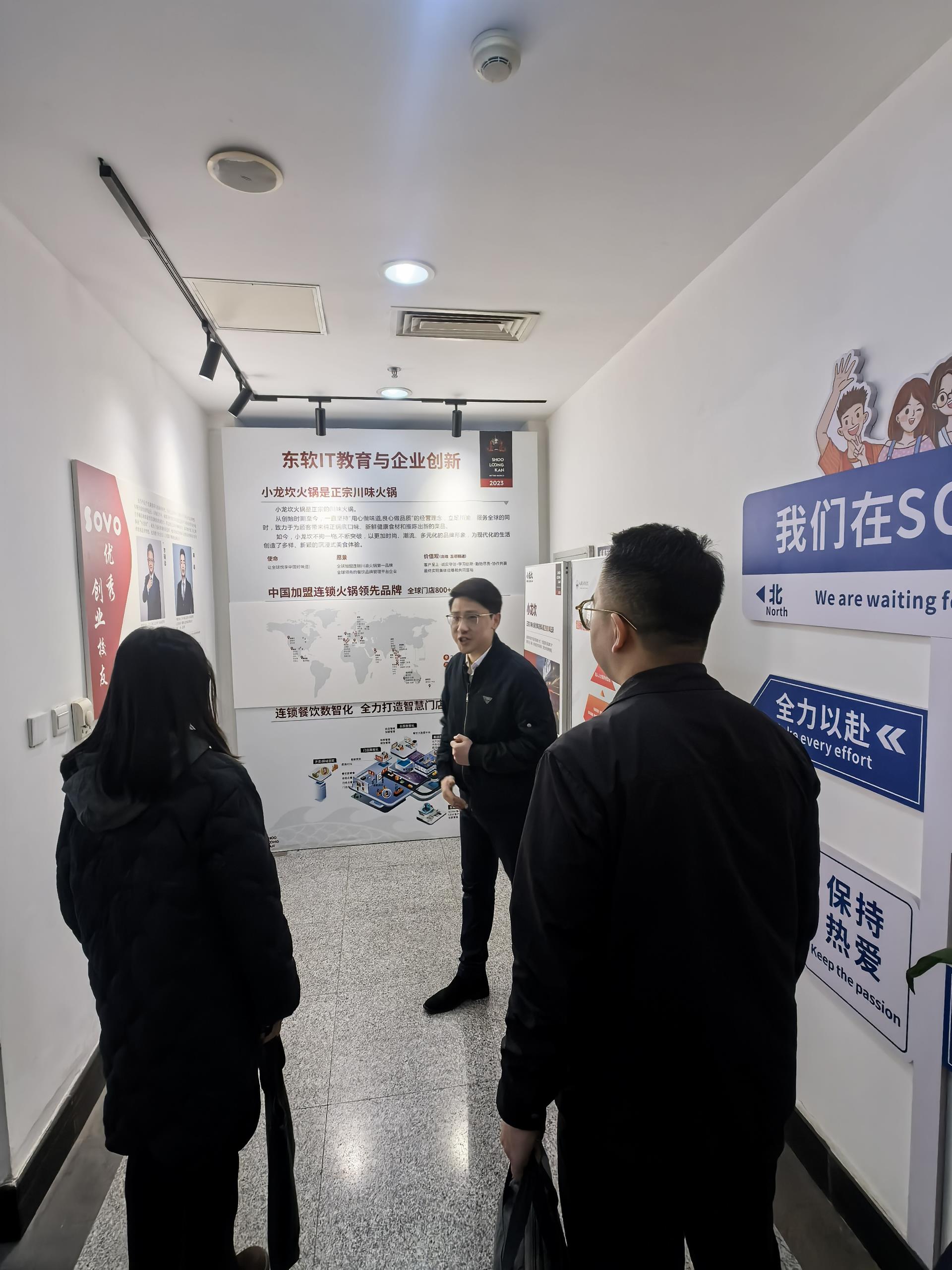 代表团来到SOVO二楼,韩主任向他们介绍了SOVO专门为初创企业开业庆典精心设立的启航厅,并详细阐述了创新工坊的各项功能。同时,他还着重介绍了创新创业学院选修课《设计思维DT》的独特创新特色。