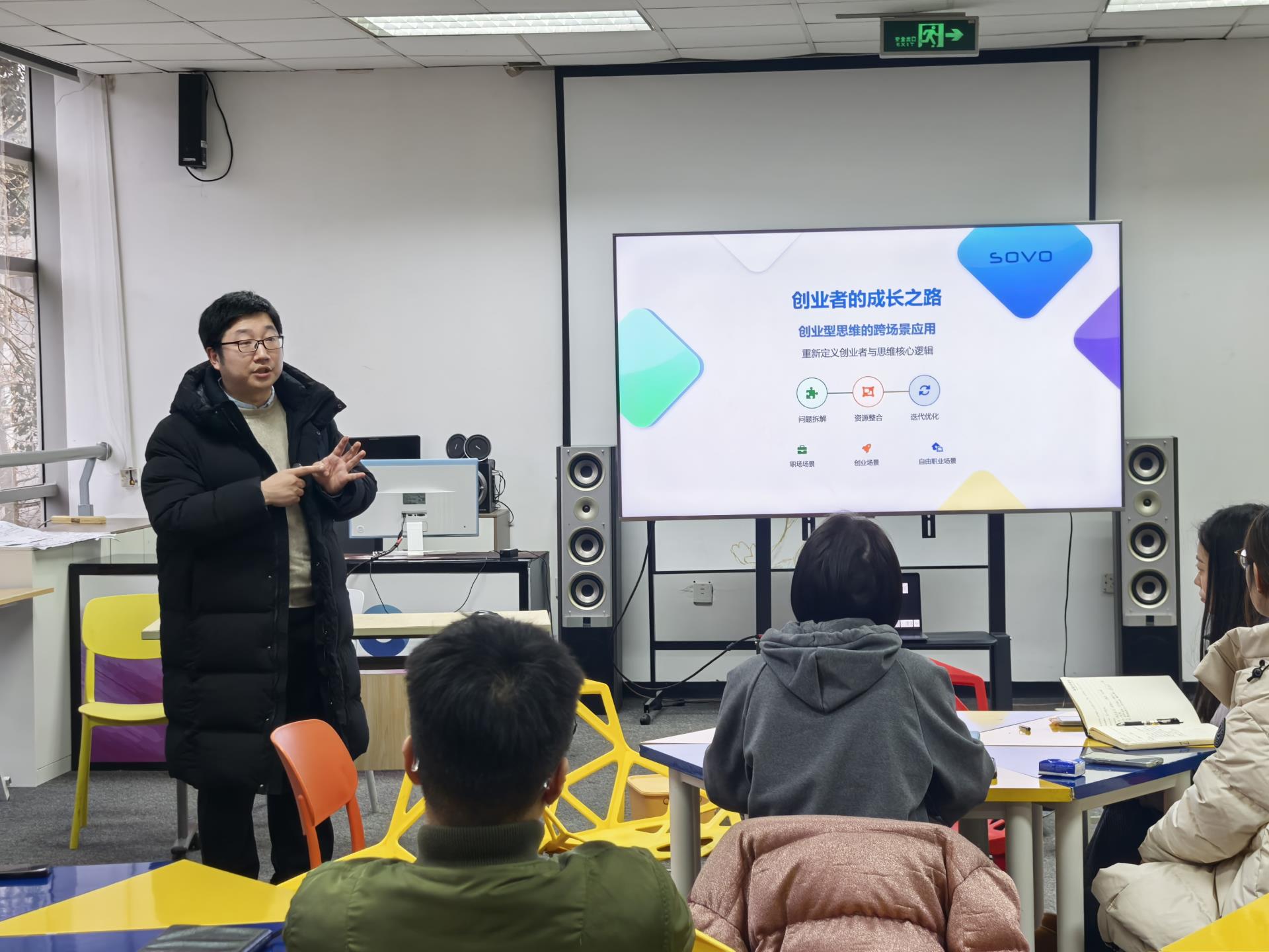 新年伊始,为了2026年1月新学期双创课程顺利开课,系统且有序地推进课程体系朝着规范化、动态化方向建设,全力保障双创教学平稳、高效运行,1月4日下午,创新创业学院(SOVO)组织召开了《从非商业计划到商业计划》、《创业者成长之路》两门课程研讨会。研讨会分别由两门课程负责人学院副院长何畅为和教育教学管理办公室副主任邱晓莹老师主持,全体任课老师参与,围绕“教学内容迭代、质量标准升级、教学手段创新”展开研讨。