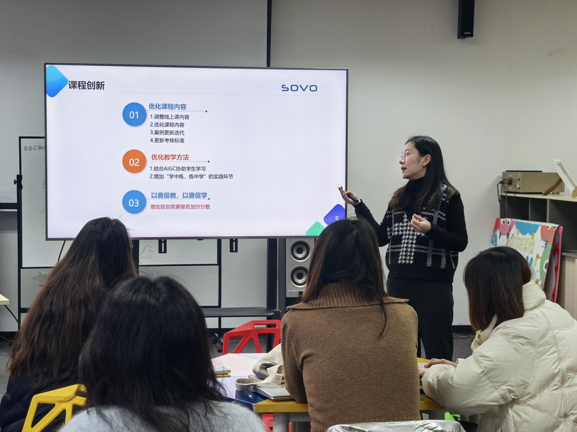 会议紧密贴合数字化智能教学体系的时代改革需求,精准聚焦课程实施过程中存在的痛点问题,展开针对性攻坚。首先,课程负责人向全体老师介绍了新学期课程在内容、教学方法上的迭代优化,以及课程紧密连接双创赛事,以赛促教,以赛促学的创新。