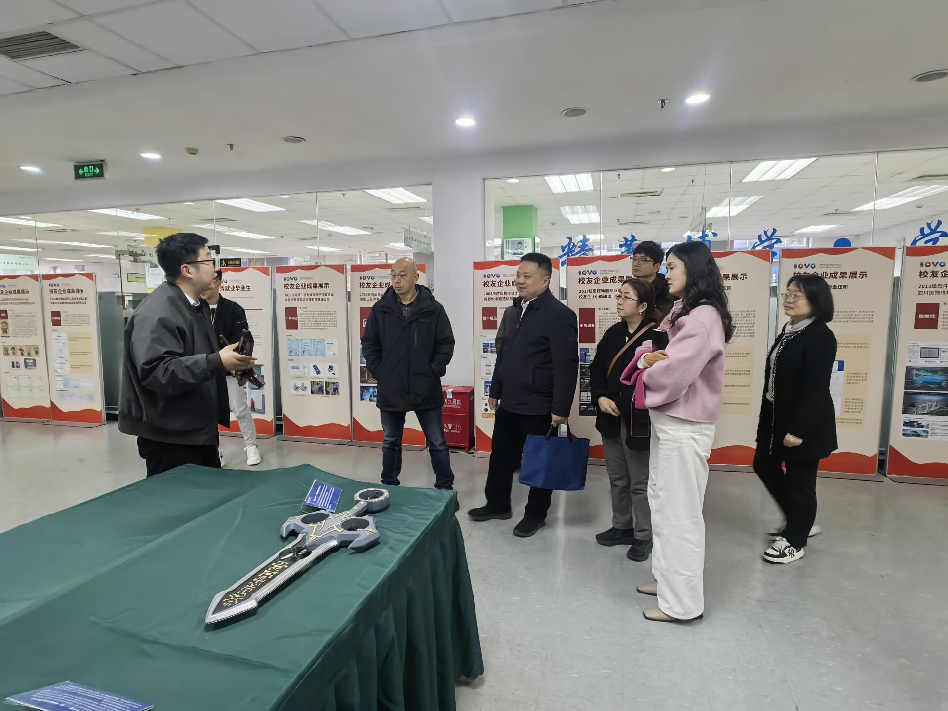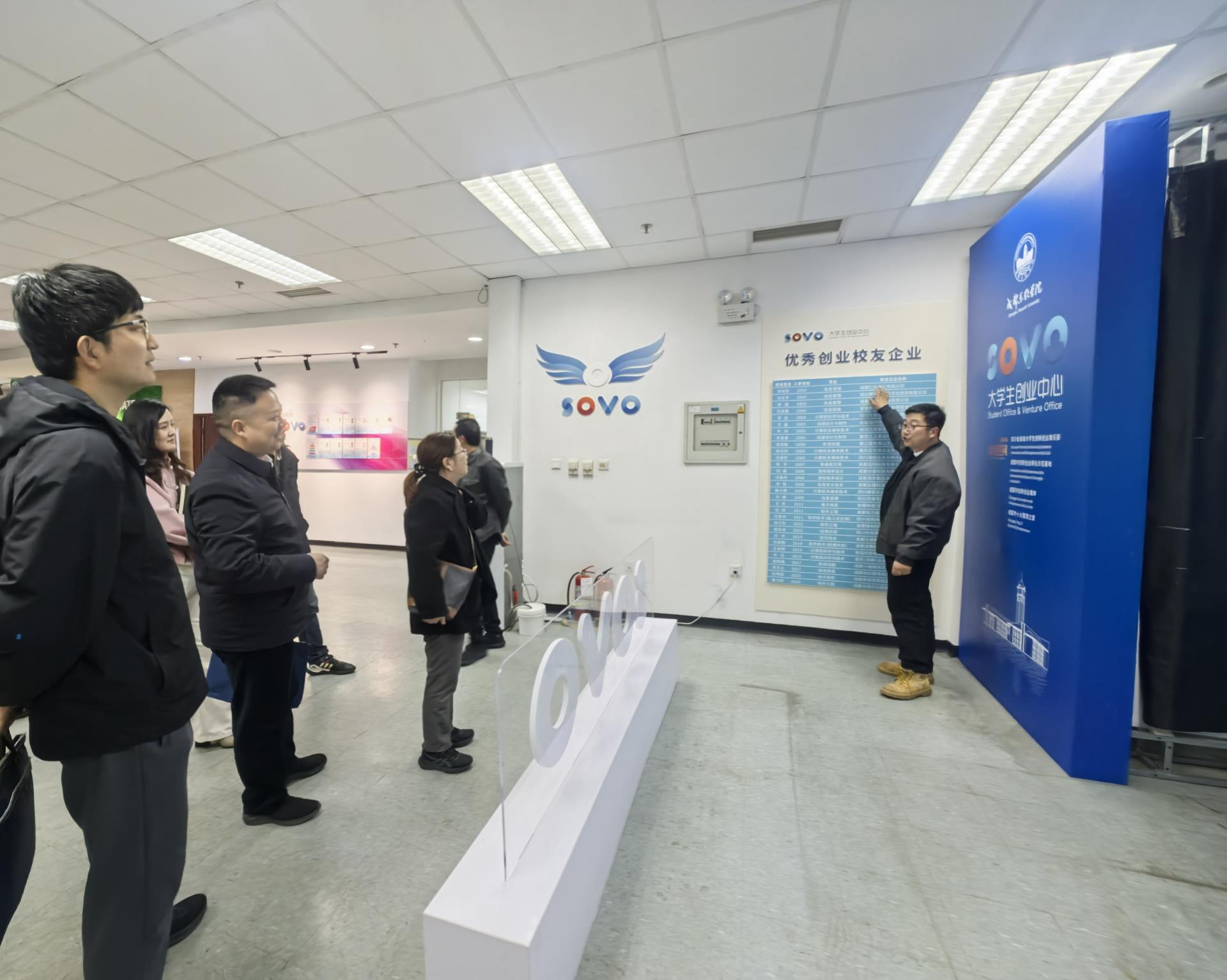 在参观SOVO二楼的启航厅和创新工坊时,何畅副院长向来宾展示了SOVO二十周年优秀毕业生创业企业的风采。四川电力职业技术学院的来宾对我院在创新创业教育与孵化方面所取得的成果给予了高度赞赏。
