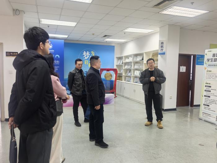 3月18日下午,四川电力职业技术学院教务管理部主任李红军、图书馆主任汪俊等一行5人,在我校教务部部长林敏的陪同下,莅临创新创业学院(SOVO)参观交流。创新创业学院副院长何畅、SOVO孵化活动管理办公室主任韩庆龙热情接待了来访的兄弟院校同仁。
