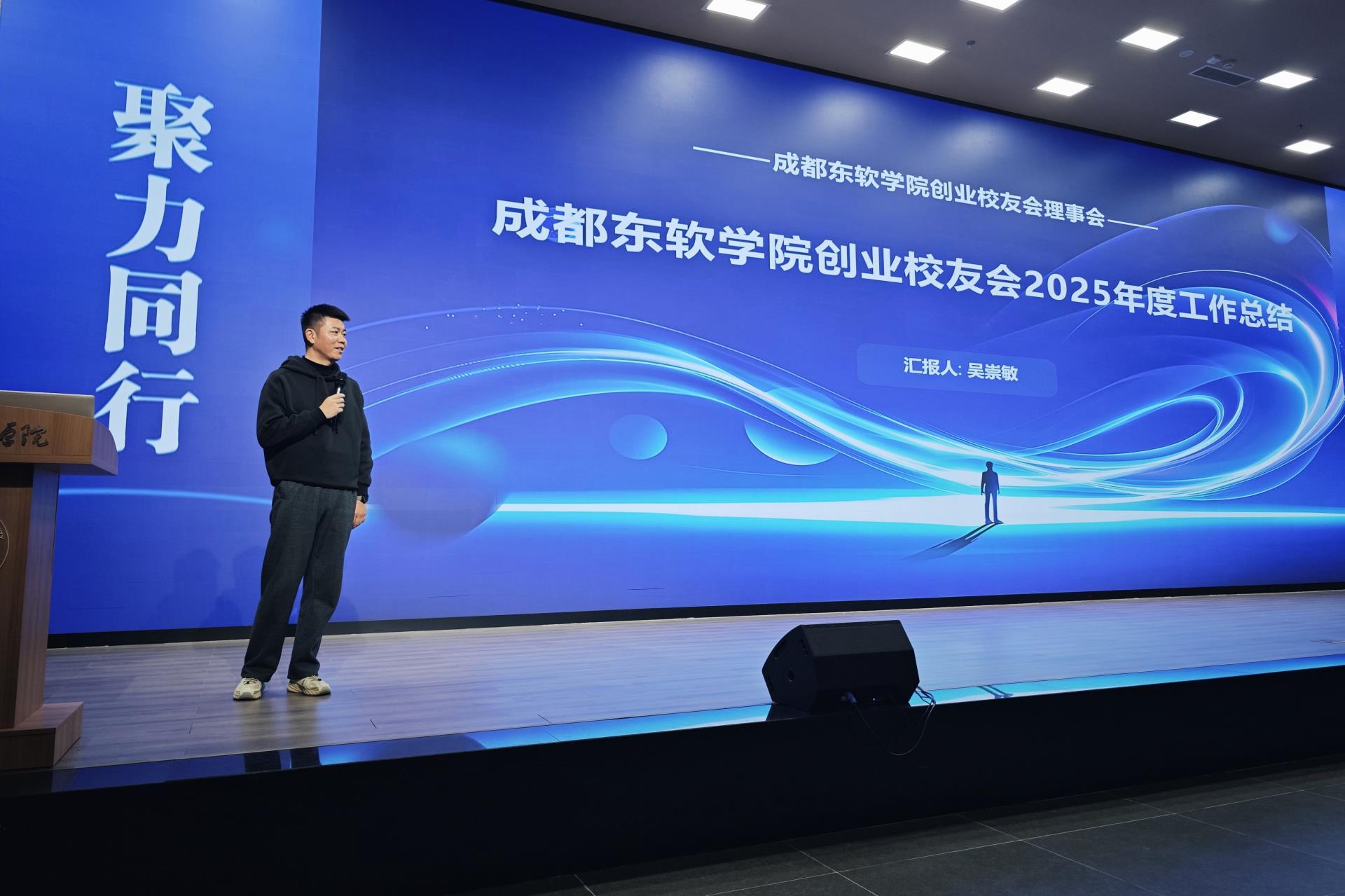 随后,创业校友会理事会理事长吴崇敏校友总结了2025年创业校友会的工作开展与校友企业反哺母校的合作成果,并发布“校友创业赋能计划”,宣布2026年将启动跨代际导师结对、校友资源库扩容、公益创业扶持项目,助力校友企业与在校生深度联动。