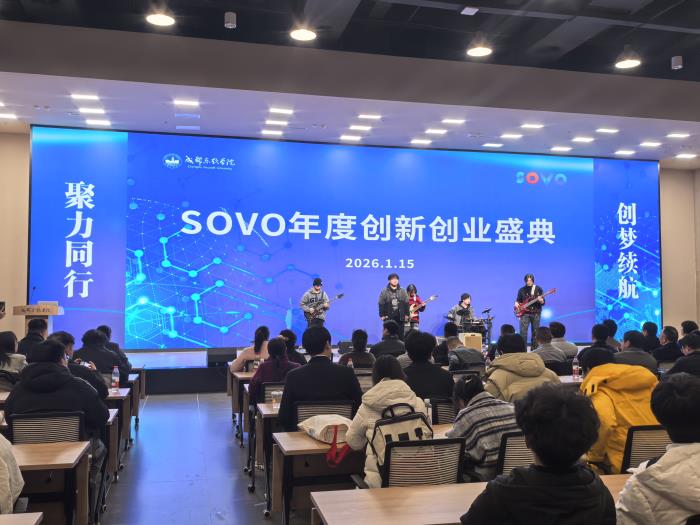 2026年1月15日下午,以“创梦续航·聚力同行”为主题的2025年SOVO创新创业盛典在华天图书馆隆重举行。校领导、招就部负责人、各二级学院党政领导、SOVO在孵企业代表、创业校友、校友会理事会成员及全体教师齐聚一堂,共同回顾双创成果、表彰先进典型、对接优质资源,为青年创业者搭建了一场“年轻化、科技感、强互动”的生态盛会。